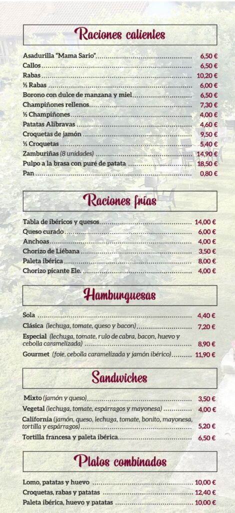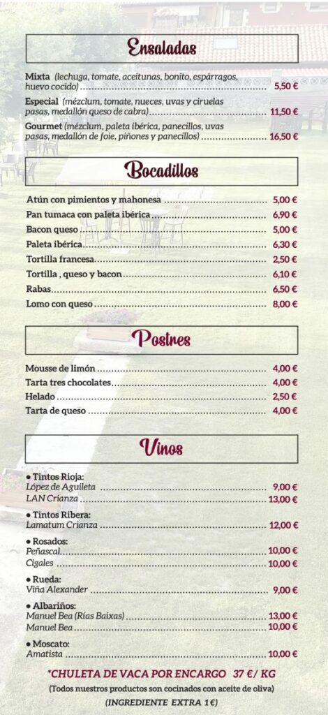 Bar Tino Escobedo carta